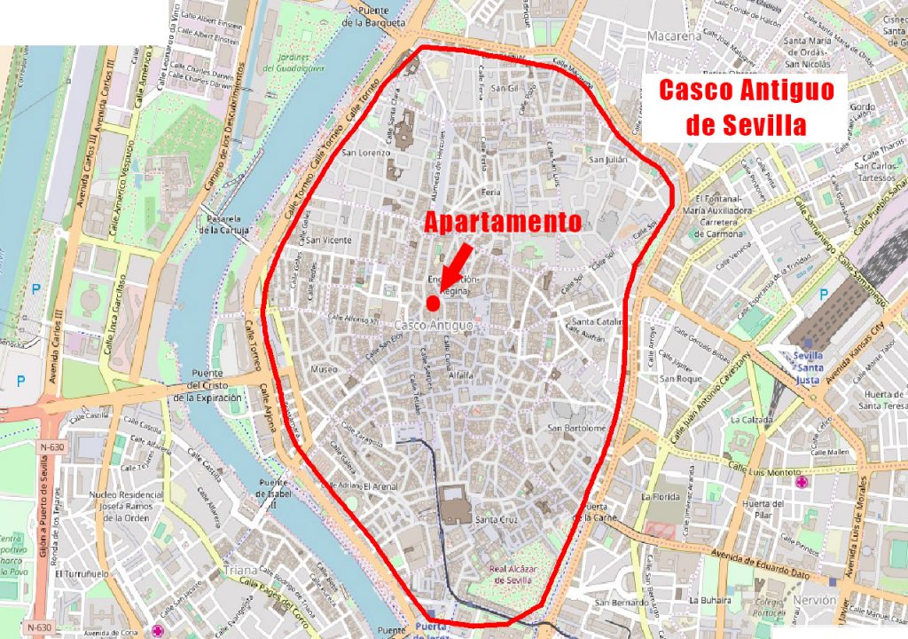 The apartment is located just in the middle of the old town of Seville. You can see below the location on the map